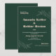 Celebre o seu dia especial com este elegante convite de casamento moderno, com uma arte minimalista de linhagem das folhas sobre um fundo verde profundo. Perfeito para casamentos contemporâneos de jardim ou celebrações sofisticadas com tema botânico.