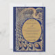 Aprecie seus convidados com esta elegante combinação do convite de casamento estilo Art Nouveau e Art Deco com um intrincado ouro pavão num fundo azul profundo. O texto está em azul para compensar o fundo dourado. A cor dourada não é uma folha real, mas um pigmento de ouro rico e colorido, e o adorável pavão vem de um antigo cobrir de livro. Mude facilmente os detalhes para os seus. Se quiser, você também pode alterar o estilo, a cor, o texto e o posicionamento da fonte. Se você gosta do design, mas gostaria de algumas mudanças, por favor, me fale no Zazzle.