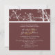 Este convite clássico apresenta cores castanhas e brancas com a imagem de ramos de nogueiras pretas com fruta anexada no inverno. Este belo e elegante convite de casamento é excelente para casamentos com cores brancas e pretas, ou durante as férias e as estações de inverno. A área de informações de RSVP no convite significa que não há necessidade de comprar RSVPs adicionais para ir com este convite clássico!