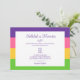 Esta design apresenta as cores ousadas e lindamente fortes da bandeira safáfica, anéis de casamento e roxo para um convite de casamento moderno. A bandeira sápica une as mulheres no seu amor umas pelas outras, sejam elas lésbicas, lésbicas multiespeculativas ou bissexuais. Você pode facilmente alterar o texto e seus detalhes clicando no botão personalizar.