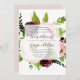 O convite elegante e moderno para o casamento floral inclui um aglomerado de rosas de aquarelas e peônias em marfim, rosa-pincel e marsala-burgundy, com exuberantes botânicos verdes e folhagem. Seus detalhes de casamento estão sobrepostos em um quadrado branco puro em letras escura e escura, acentuadas com o roteiro escrito à mão.