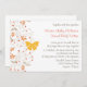 Esta elegante e romântica design apresenta uma ramificação laranja e amarela, marrom-claro, com borboleta amarela escura. Os nomes da noiva e do noivo na mesma cor laranja-vermelha que nas flores. O texto está num marrom médio que coordena com o galho e os caules. Isso seria bom para um casamento no jardim de verão ou poderia ser personalizado em um cartão de aniversário ou chá de panela.
