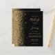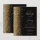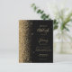 A borda esquerda deste elegante convite de casamento moderno apresenta uma borda falsa de ouro. O texto personalizável combina manuscrito colorido de ouro pálido, fontes copperplate e itálico em um fundo preto. O verso apresenta um design preto e dourado correspondente.