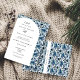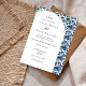 Convide seus entes queridos para comemorar seu dia especial com este elegante convite de casamento com uma sofisticada fronteira floral azul. O layout limpo, clássico, combina fontes de sif de eterno e de script gracioso, destacando seus nomes e detalhes de evento para uma aparência refinada e romântica. Perfeito para casamentos tradicionais ou modernos, este convite é totalmente personalizável com suas informações de casamento para criar um anúncio memorável