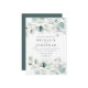 Um convite elegante para o casamento, com cor d'água, azul empoeirado e eucalipto verde e outros verdes. Se você precisar de alterações no design, como cor, texto ou fonte; entre em contato conosco em seamistmail@gmail.com. Adoramos fazer parte de suas memórias felizes.