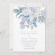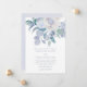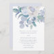 Um belo convite para o casamento floral azul, delicado e mudo, apresenta bonito flores azuis de cor aquática, estilo vintage, e um simples design clássico com tipografia elegante com script de caligrafia. A parte de trás é um clássico azul em pó.