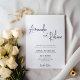 Um convite de casamento moderno e minimalista com caligrafia lúdica para os nomes dos casais, aliado a elegantes sans-serif textos. Ideal para casais na moda que procuram um design limpo, mas sincero, para o seu grande dia.