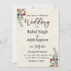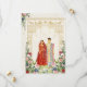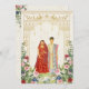 Uma bela ilustração digital sem rosto de um casal indiano que se casou com tons brilhantes de vermelho e ouro e flores elegantes na fronteira inclui a personalização.