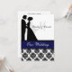 impressão preto e branco com banda azul marinho, noiva e noiva silhueta, e áreas que você pode personalizar com seus nomes, monograma inicial, cerimônia de casamento e informações de recepção em um convite de casamento personalizado que é clássico e tradicional tudo em um!
