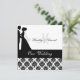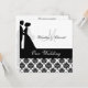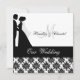 Impressão de damasco preto e branco, noiva e noiva silhueta, e áreas que você pode personalizar com seus nomes, monograma inicial, cerimônia de casamento e informações de recepção em um convite de casamento personalizado que é clássico e tradicional em um só!