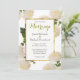 Este convite romântico de casamento apresenta um padrão de crisântemos vintage ilustrados e uma falsa fronteira de sotaque de folha de ouro.