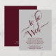 Este simples convite de casamento minimalista é elegante e na moda, enquanto ainda é amigável e barato. Ele apresenta uma lenda de burgundy e design de cinza com leitura de escrita: To Be Wed e todas as informações importantes por baixo. Há espaço opcional no verso para o URL do seu site de casamento. Na moda e sofisticado este convite é uma maneira maravilhosa de convidar seus amigos e família a compartilhar sua alegria em seu dia especial.