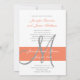 Cinzas, convite para casamento de brancos e corais com seu monograma e nomes em uma design moderna simples, mas elegante. ELKE CLARKE © para a Galeria de Monogramas. Mostrado no papel branco básico