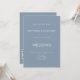 Convite para Casamento de Código QR Azul Simples e Moderno Dusty. A cor e o tipo da fonte podem ser alterados através do menu de edição. Você também pode alterar as cores do texto e do plano de fundo em ambos os lados, se desejar. Adicione seu código QR ao seu site de casamento no verso como uma opção conveniente para seus convidados para RSVP. Os códigos QR podem ser criados gratuitamente on-line. Basta pesquisar "Criador de código QR" e selecionar um dos criadores livres. Você também pode remover o código QR se desejar.