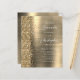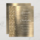 A borda esquerda deste elegante convite de casamento moderno apresenta uma borda falsa de ouro. O texto personalizável combina manuscrito branco, fontes em copperplate e itálico em um fundo de metal esfregado em falso ouro. O verso fornece espaço para detalhes do casamento em um fundo de metal escovado em ouro, juntamente com um código QR que os convidados podem digitalizar para visitar seu site e RSVP, o que economiza o custo de impressão e envio de placas RSVP separadas.