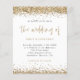 Um valor para o alternativo do ORÇAMENTO em tamanho menor de 4,5 x 5,6" de semirbrilho de 110 lbs, que é de espessura semelhante a um cartão postal (no entanto, não é adequado para uso como cartão postal). POR FAVOR, OBSERVE QUE HÁ UM convite por folha. Convite Dourado de Casamento de Código QR para Glitter. Adicione seu código QR ao seu site de casamento no verso faz com que esta seja uma opção conveniente para seus convidados para RSVP e veja todos os detalhes sem a necessidade de RSVP separado e cartões de detalhes. Uma tipografia elegante está em ouro para o título principal "O Casamento de complementar o resto do texto que você pode personalizar facilmente, com bordas de confete falho dourado no topo e no fundo e também no verso.