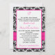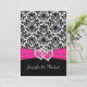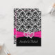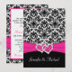 Este convite para casamentos tema damasco brancos e pretos tem uma fita IMPRESSA rosa-quente com um par de broche de brilho FAUX (Impresso) unido com corações de diamante. Todo o texto e o tipo de papel são personalizáveis. Se você precisar de algum item correspondente, envie seu pedido por e-mail para niteowlstudio@gmail.com.
