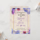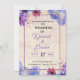 Este convite de casamento apresenta um fundo texturizado com uma borda roxa e dourada. Adorada com flores aquáticas vibrantes em tons de roxo, rosa e azul, expele uma vibração artística e romântica. Perfeito para uma elegante celebração de casamento.