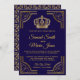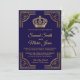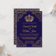 Encontrem seus hóspedes com este tema real convite de casamento com uma elegante fronteira de ornamentado de ouro e uma bela coroa contra um fundo azul. Basta adicionar os detalhes do seu evento neste modelo fácil de usar para torná-lo um convite de tipo único. Sacudir a placa para revelar um belo padrão na parte traseira da placa. Este convite é totalmente personalizável. Todos os textos são editáveis e a cor de fundo pode ser facilmente alterada para quais melhores ajustados você pode fazer.