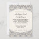 A beleza clássica de uma cor damasco cria um quadro elegante em torno de sua redação neste local de colheita inspirado na cor damasco floral. O quadro é embelezado com uma borda pontilhada em pérola. Este design elegante tem uma cor de creme leve com uma cinza de fundo travessa ou lavanda empoeirada. O verso do convite também tem o padrão. Se você precisar desse espaço para obter mais informações, poderá excluir o padrão para revelar um plano de fundo de cor sólida.