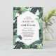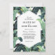 Folhas de banana glamourosa adoram este convite de casamento moderno. Um elemento geométrico e uma folhagem tropical exuberante empresta-se a um caso verdadeiramente na moda. Digite nosso compro para coordenar itens: