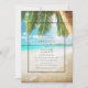 Águas turquesas, areia branca e design de casamento de palmeiras para seu destino tropical ou casamento de praia. Este convite para o casamento na praia é feito numa mistura moderna de fontes e impresso em tinta de cinza escura. Personalize o convite com os detalhes do seu casamento.