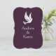 Esta cor de ameixa profunda com o texto prateado é simplesmente maravilhosa, eu adoro esta cor para o outono e/ou casamentos no inverno e eu acho que a combinação de prata é realmente agradável. A pomba sempre foi um símbolo adorável de harmonia e amor, então eu acho que incorporá-la ao seu tema de casamento é uma ideia excelente e este convite a faz lindamente.