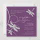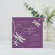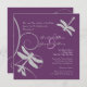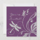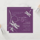 O convite apresenta cores roxas e cinzas prateadas com lindas flores e libélulas prateadas em torno de texto totalmente personalizável. Área de informações RSVP disponível no convite, portanto não é necessário RSVPs adicionais! Encomenda a opção de papel prateado para uma aparência de prata neste belo convite!