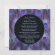 Coleção de Casamentos de Penas Peacock, única e moderna, em roxo dramático com sotaques azuis aqua. Personalize o convite com a hora, data, local, recepção e outras informações. Janela circular no convite do cartão quadrado. Tema de correspondência disponível em outros produtos na minha loja.
