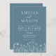 Convite para Casamento de Flor Selvagem Azul Dusty. Este convite tem um estilo suave e elegante com um fundo azul mudo que se sente calmo e eterno. As fontes misturam serifas clássicas com scripts fluidos, dando-lhe um equilíbrio de formalidade e calor. As ilustrações florais brancas deliciosas ao longo da base adicionam um toque de charme brilhante e inspirado na natureza. O layout é limpo e organizado, usando um alinhamento centralizado e espaçamento nítido para criar uma aparência refinada. No geral, a design sente-se romântica, mas subestimada, perfeita para um casamento moderno, mas tradicional.