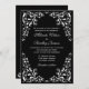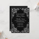 © 2011 Designs socialitas. Um convite elegante a preto e branco com lindas espirais decorativas de canto prontas para serem personalizadas para o seu evento. O estilo da fonte, o texto e o tipo de papel podem ser alterados. Precisa de ajuda com personalização? Por favor, não hesite em contactar-me com os seus requisitos e uma ligação a este design.