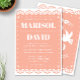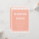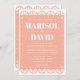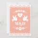 Um belo convite de casamento do estilo picado em um fundo rosa-pinto-pincelado. A parte traseira apresenta um design de pomba com as iniciais do casal. Perfeito para um casamento mexicano tradicional ou moderno.