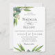 Dólar de prata aquoso e ramificações floridas de eucalipto salgado, convite para casamento. Personalizar texto, estilo de fonte, cor e tamanho.