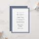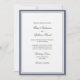 Convite de casamento clássico com introdução geral para os anfitriões da noiva e do noivo: juntamente com as suas famílias. Escrito elegante tradicional e texto de cinza escura simples dentro de uma borda dupla azul. Volta azul. Para ajustar o layout, clique em Personalizar, Editar Texto e, em seguida, clique em e arraste seções de texto para os locais desejados. Use Cntrl para selecionar e mover várias seções ao mesmo tempo.