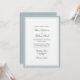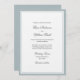 Convite de casamento clássico com introdução geral para os anfitriões da noiva e do noivo: juntamente com as suas famílias. Escrito elegante tradicional e texto de cinza escura simples dentro de uma borda dupla azul e poeirenta clara. Volta azul. Para ajustar o layout, clique em Personalizar, Editar Texto e, em seguida, clique em e arraste seções de texto para os locais desejados. Use Cntrl para selecionar e mover várias seções ao mesmo tempo.