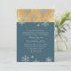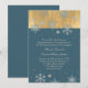 O convite para casamento no inverno de chic é feito em uma cor azul de cadete com gráficos de uma folha de ouro. Veja os sotaques de floco de neve em cima, azul e dourado. Personalize todo o texto para atender às suas necessidades. Escolha entre várias opções de estoque de cartão diferentes para a aparência que você mais gosta. Os produtos correspondentes estão disponíveis.