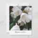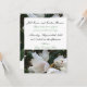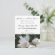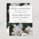 Um belo arbusto florescente com flores brancas claras acentuadas pela folhagem verde profunda. Um fundo branco permite destacar o texto. Personalize com todas as suas informações de casamento.