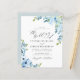 Um design floral de aquarela com rosas azuis claros pintados e roteiro preto, e cor azul empoeirada de trás. A cor e o texto podem ser editados para corresponder ao seu tema de casamento. Você pode alterar o tamanho, a fonte e o posicionamento do texto.