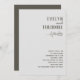 Convide seus convidados para comemorar seu dia especial com este convite de casamento maravilhosamente projetado. Apresentando uma sofisticada paleta de cores neutras, este convite é eterno e versátil, adequado para qualquer tema de casamento. A elegância subestimada é potencializada por uma delicada ilustração de arte de linha de uma flor, acrescentando um toque de beleza natural e charme. Perfeito para casais que procuram um clássico, mas moderno, este convite de casamento deixará uma impressão duradoura para os seus convidados.