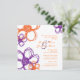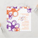 O convite apresenta cor de laranja tangerina e flores bonito e cor púrpura esboçadas em forma de fundo branco em torno de texto totalmente personalizável. Área de informações RSVP disponível no convite, portanto não é necessário RSVPs adicionais! Excelente para casamentos de Primavera e Verão!