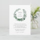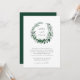 Nosso convite para o casamento da Floresta Selvagem mostra seus nomes cercados por uma coroa de folhagem de cor d'água de inverno em tons de vinho de floresta e verde caçador. Personalize este convite de casamento botânico moderno e elegante com seus detalhes de casamento em letra chic off-black. Uma bela escolha para casamentos de inverno ou primavera em clássico, verde e branco fresco.
