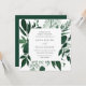 Nosso convite de casamento da Floresta Selvagem em um formato quadrado único enquadra seus detalhes de casamento com uma borda de folhagem de cor d'água pintada em tons de vinho de floresta e verde caçador. Uma escolha moderna, mas orgânica, para casamentos de inverno ou primavera.