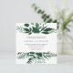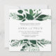 Nosso convite de casamento da Floresta Selvagem em um formato quadrado único enquadra seus detalhes de casamento com uma borda superior e inferior de folhagem de aquarela em tons de vinho de floresta e verde caçador. Uma escolha moderna, mas orgânica, para casamentos de inverno ou de primavera que apresentem botânicos de cor d'água pintados intricadamente em verde fresco.