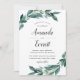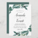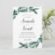 Os convites de casamento botânico elegantes apresentam uma paleta colorida de floresta verde, tinta escura e branco escura. Os detalhes do seu casamento estão cheios de galhos verdes abundantes e folhas num estilo de aquarela pintada vibrantemente.