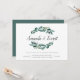 O convite de casamento botânico gráfico apresenta folhas verdes de eucalipto exuberantes ilustradas em aquarela, enquadrando seus nomes em um elegante roteiro de caligrafia manuscrito. Personalize com seus detalhes de casamento ao longo da base em um layout moderno atraente. Cartões invertidos a verde florestal sólido.