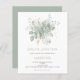 Convite Dourado de Folhagem Verde Sage. Um alternativo de 4,5 pol x 5,6 pol com preço inferior. Disponível em um STOCK DE CARTÃO SEMI-GLOSS 110 lb, que é a opção padrão (mais espesso para convites), OU um STOCK de PAPEL THINNER FINISH 80 lb FINISH (ideal para gabinetes). Os envelopes são um extra opcional e são ligeiramente maiores que o tamanho da placa. Um elegante motivo de sábio e folhagem dourada está no topo, com seus detalhes abaixo. Personalize facilmente o texto e você também pode alterar estilos de fonte e cores, se desejar através da opção Clique para personalizar mais. Você também pode estar interessado em nosso nome de convidado individual e folhas de adesivos de endereço nesta coleção para ajudar nas suas mensagens de casamento.