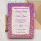 Convide seus convidados com este elegante convite de casamento, com uma falsa borda de ouro e um belo fundo de brilho roxo. Basta adicionar os detalhes do seu evento neste modelo fácil de usar para torná-lo um convite de tipo único. Sacudir a placa para adicionar o monograma da noiva e do noivo na parte traseira da placa.