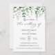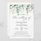 Este design apresenta uma ilustração aquosa das folhas de eucalipto com um confete de efeito esverdeado e ouro no topo.