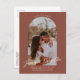 Convide convidados para o seu casamento com este simples e moderno terracota colorido, salve o cartão postal do convite. A foto no cartão pode ser mudada para a sua. Isto exceto o convite de data é perfeito para qualquer estação.