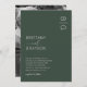 Mínimos convites de casamento chic com um fundo na moda verde, suas iniciais no canto superior direito, um modelo de texto elegante moderno com seus nomes, e as informações de casamento.